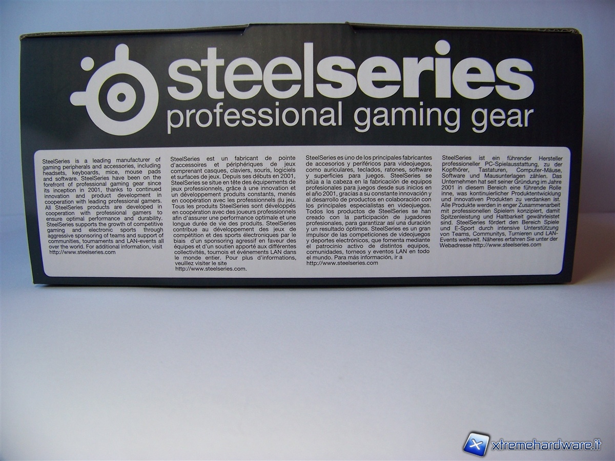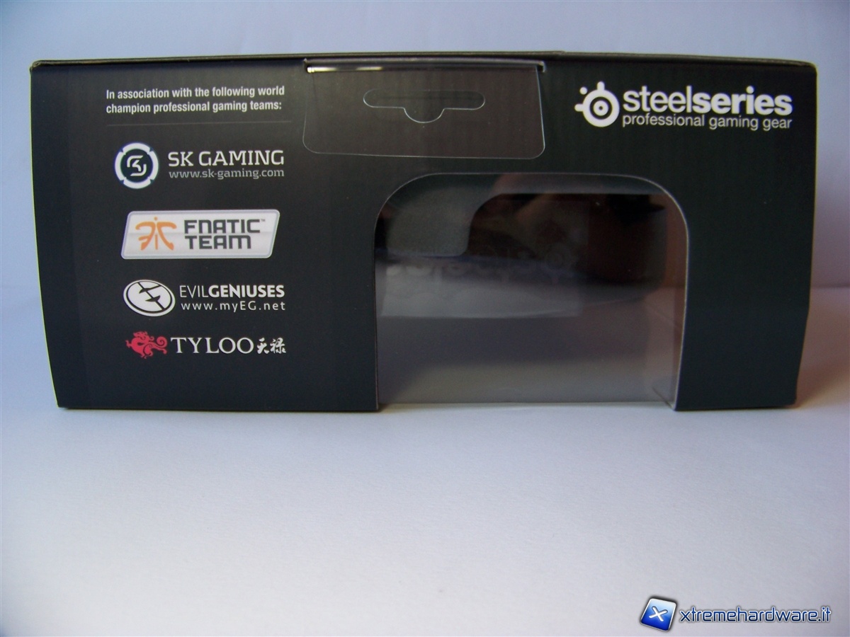 La scatola si presenta ricca di informazioni e con una finestra sul prodotto, come nel classico stile SteelSeries.