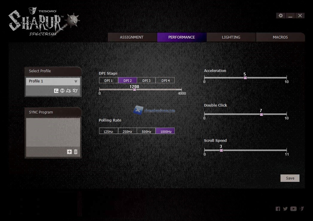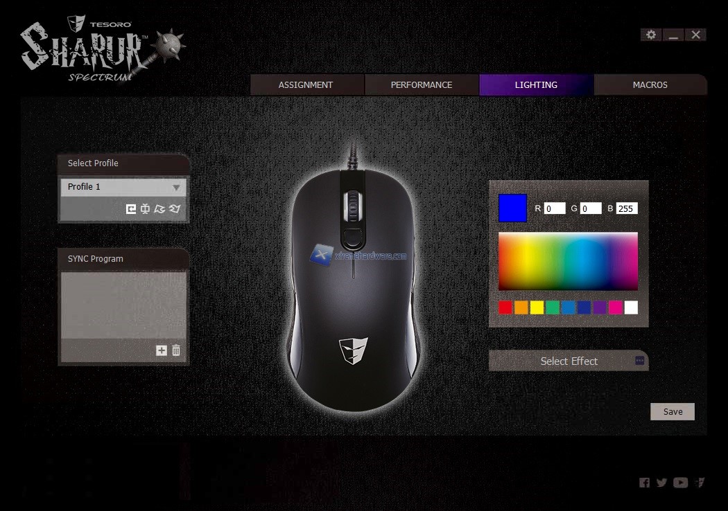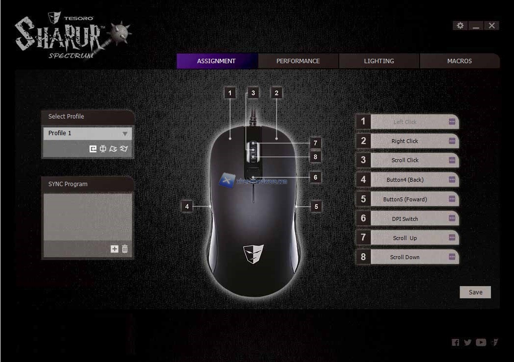 Come sempre anche nel bundle del Tesoro Sharur Spectrum non viene fornito alcun software di gestione che ci permetterà di agire sui maggiori parametri ed impostazioni del mouse, dovremo provvedere a collegarci al sito di Tesoro e scaricarlo.