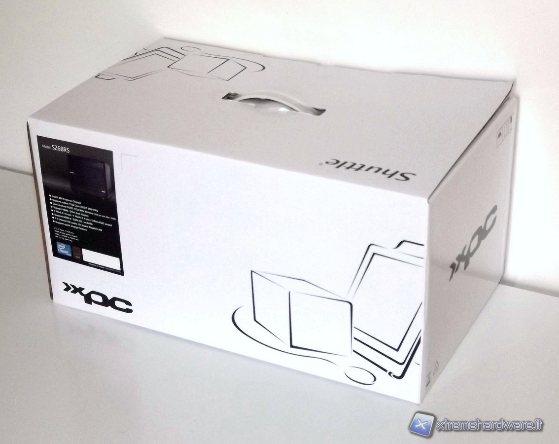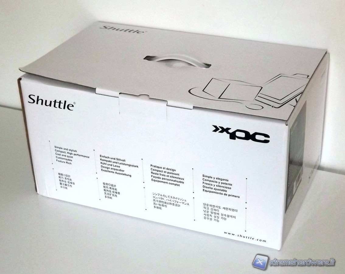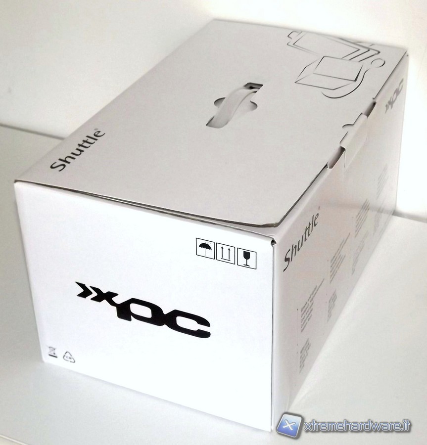 Il prodotto di Shuttle è alloggiato dentro una scatola dallo sfondo bianco, dove sono messi in evidenza il marchio Shuttle, la scritta XPC ed alcune caratteristiche principali del prodotto. ll cabinet è protetto da un involucro che fa uso di polistirolo e cartone, che proteggono il prodotto dagli urti durante il trasporto e lo mantengono integro fino al consumatore finale. Inoltre nella parte superiore della scatola è presente una maniglia che ne facilita le operazioni di trasporto.